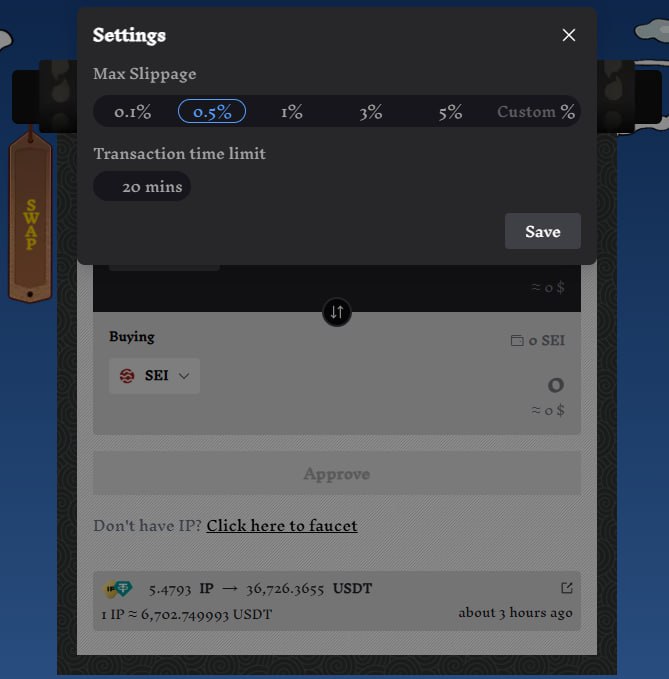 Slippage occurs when the final price of a transaction is different from the expected price due to changes in market conditions. On Mimboku, you can adjust the slippage tolerance to control how much the price can differ before the transaction is canceled.